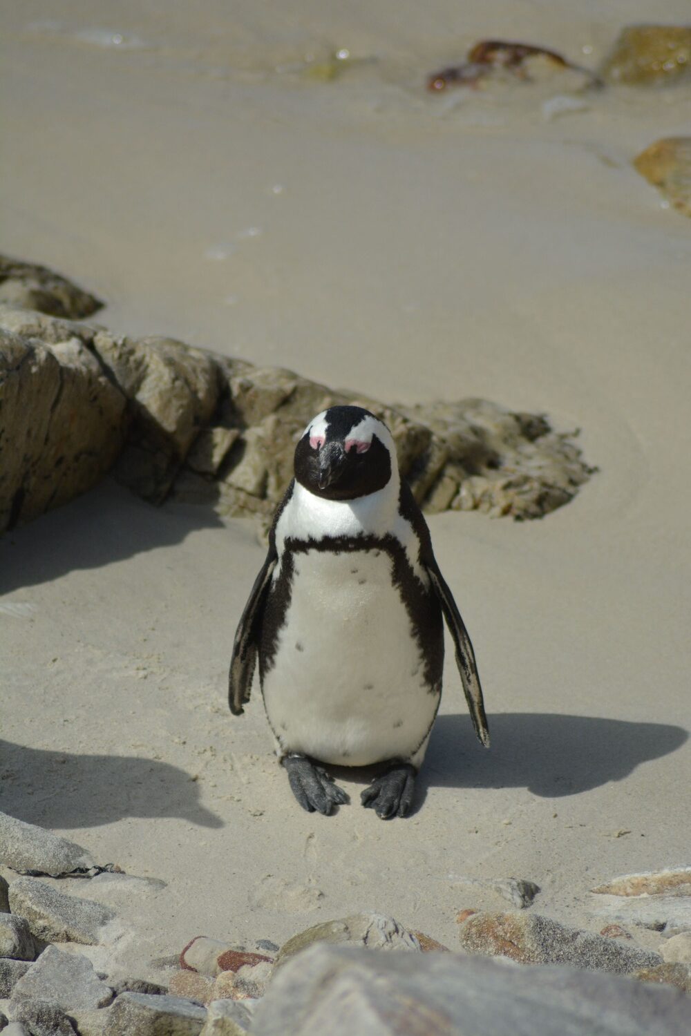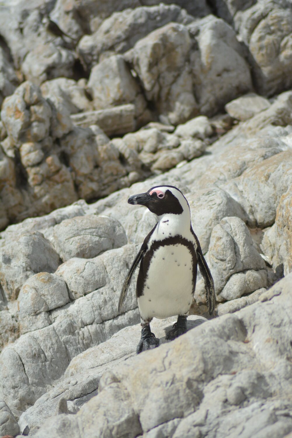 Gut gestärkt ging es nach Bettys Bay, ein Küstenort zwischen Hermanus und Kapstadt, wo schon auf dem Parkplatz ein paar afrikanische Pinguine auf uns warteten. Denn hier kannst du die Stony Point Pinguinkolonie beobachten. Highlights am Stony Point Nature Reserve: