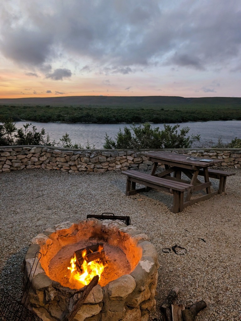 Das Tolle an unserer Lodge: Sie hat nicht nur eine eigene Braai-Stelle (traditionelle afrikanische Grillstelle), sondern auch einen Hot Tub, den man mit Feuerholz selbst beheizt. Nach dem langen Fahrtag machten wir es uns dort gemütlich, grillten bei Sonnenuntergang unter den Bäumen und genossen später den Sternenhimmel aus dem warmen Wasser des Hot Tubs. Ein magischer Moment und einer der schönsten Abende unserer Reise.