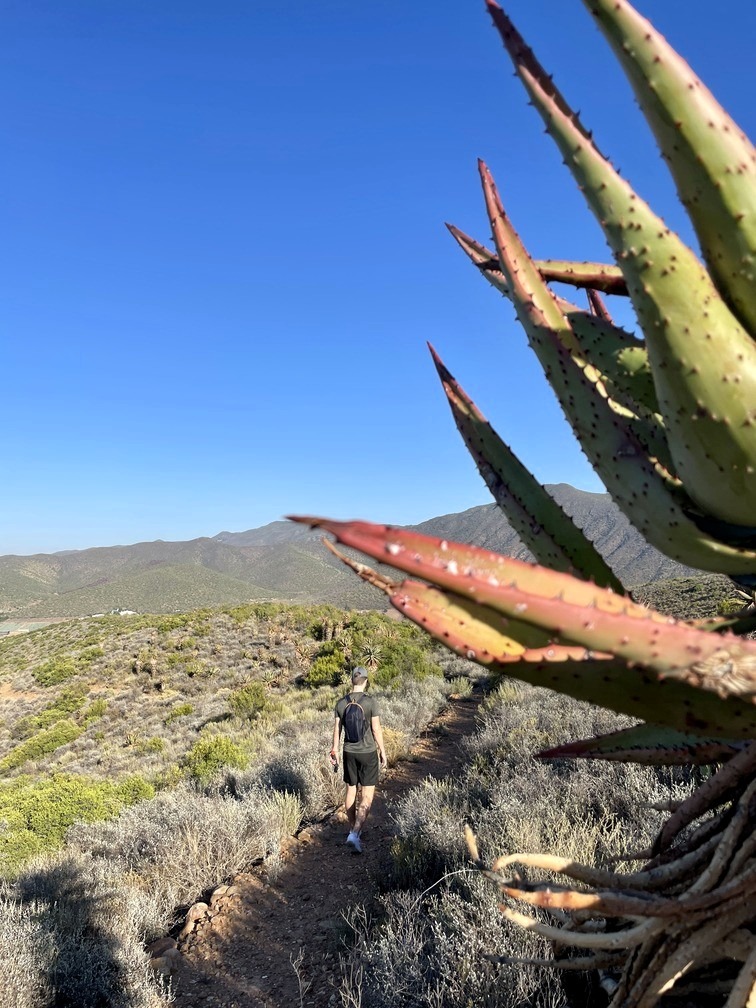 Früh am Morgen nutzten wir die kühle Luft für eine kleine Wanderung direkt ab unserer Unterkunft, der Le Petit Karoo Ranch. Das Besondere: Hier bist du fast ganz allein unterwegs, denn dieses abgelegene Naturgebiet erkundet man meist nur, wenn man direkt vor Ort übernachtet.