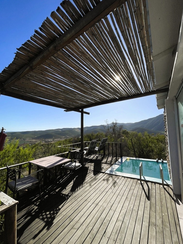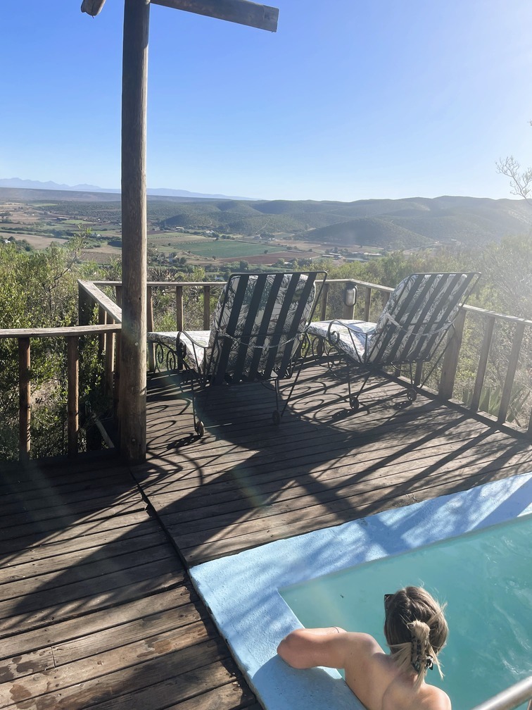 Am Nachmittag erreichten wir Oudtshoorn, das Zentrum der Straußenzucht in Südafrika. Unsere Unterkunft, die Le Petit Karoo Ranch, lag leicht erhöht außerhalb der Stadt und überraschte uns mit einem traumhaften Panoramablick, einem privaten kleinen Pool und herrlicher Ruhe. Ein Ort zum Durchatmen & Abschalten, auch wenn es nachts im Zimmer ganz schön warm wurde (die Klimaanlage fehlt leider).
