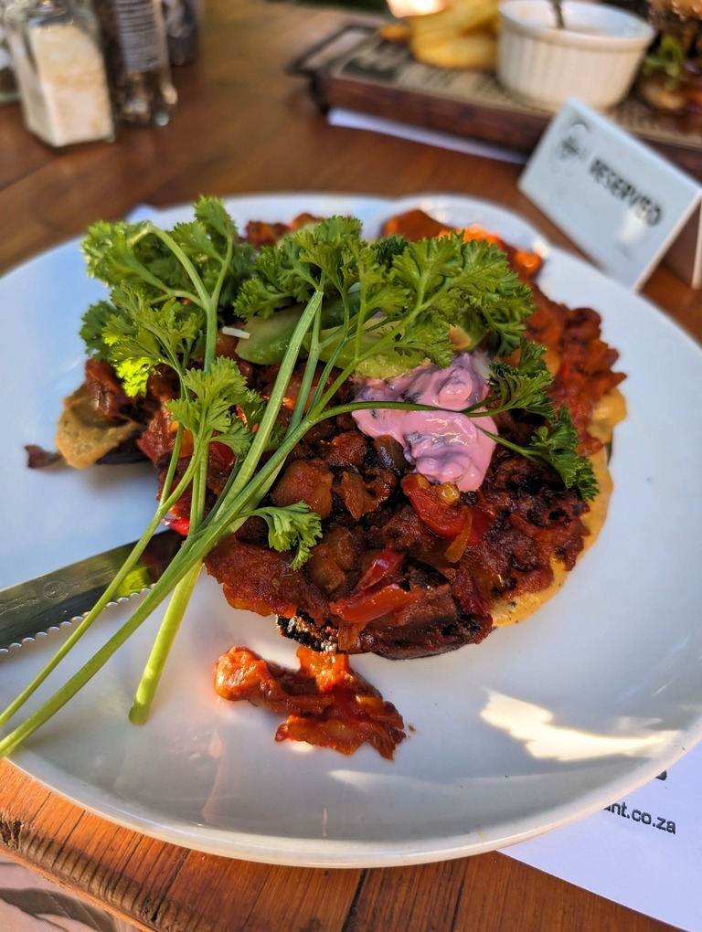 Auch kulinarisch war Jeffreys Bay ein Volltreffer: Nina’s Real Food hat uns mit einer großen Auswahl an vegetarischen und veganen Gerichten begeistert. So gut, dass wir dort gleich zweimal gegessen haben: zum Mittag- und Abendessen!
