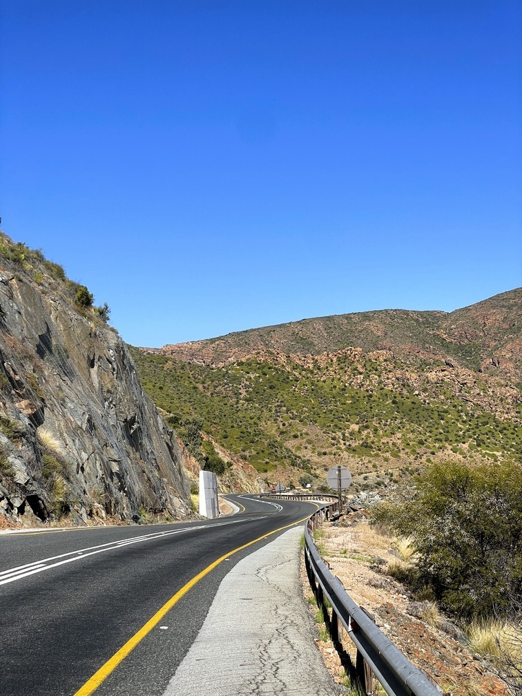 Gut gestärkt machten wir uns auf den Weg über den beeindruckenden Du Toitskloof Pass, eine Strecke, die wir dir nur wärmstens empfehlen können. Die kurvenreiche Passstraße führt durch eine atemberaubende Berglandschaft mit spektakulären Ausblicken über das Weinanbaugebiet rund um Worcester. Für uns war die Fahrt schon ein erstes echtes Highlight!