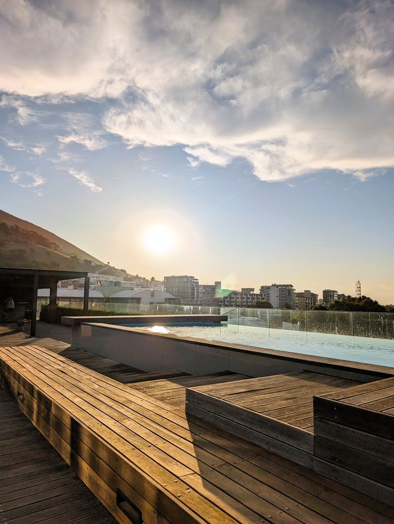 Unsere Unterkunft lag direkt an der V&A Waterfront, sehr zentral und inkl. Tiefgaragenplatz, Dachterrasse mit Pool, BBQ und Blick auf den Tafelberg und einem Sicherheitskonzept.