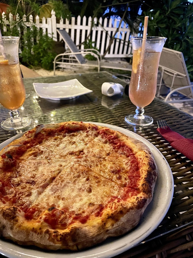 Angeblich gibt es hier die beste Pizza der Seychellen und wir können dem nicht widersprechen, da wir keine bessere Pizza auf den Seychellen gefunden haben. Besonders schön fanden wir den Platz bei der Beach Bar direkt am Strand. Mit den Füßen im Sand den Sonnenuntergang genießen und dabei eine leckere Pizza essen – was will man mehr?