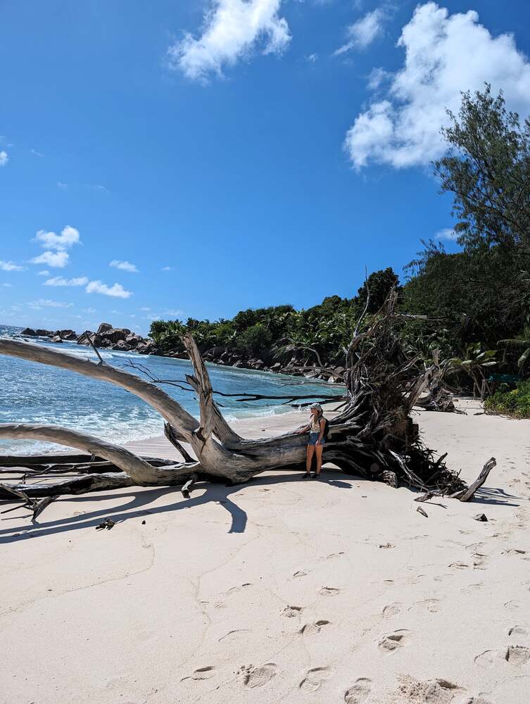 Nur wenige Fahrradminuten vom Hafen entfernt liegt der Anse Severe, einer unserer Lieblingsstrände und quasi unser „Hausstrand“. Anders als auf Mahé oder Praslin findest du hier, wie auf fast allen Stränden von La Digue, viele schattige Plätzchen.