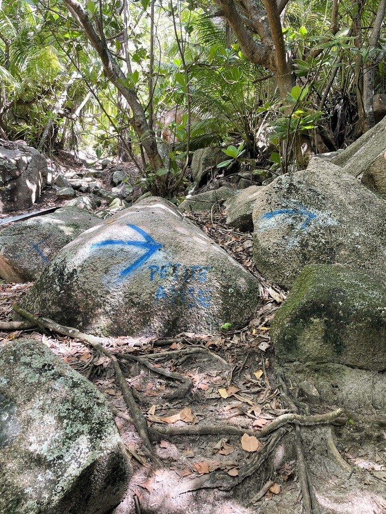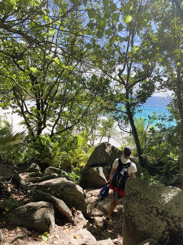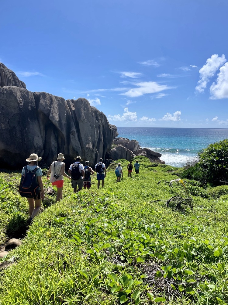Die Wanderung zur Anse Marron ist ein echtes Abenteuer und sollte unbedingt mit einem Guide gemacht werden, da der Weg kaum zu finden ist. Oft klettert man über Felsen, kraxelt durchs Gelände und man kann sich leicht verirren. Gleichzeitig erfährt man unterwegs viel Spannendes über die Flora & Fauna von La Digue.