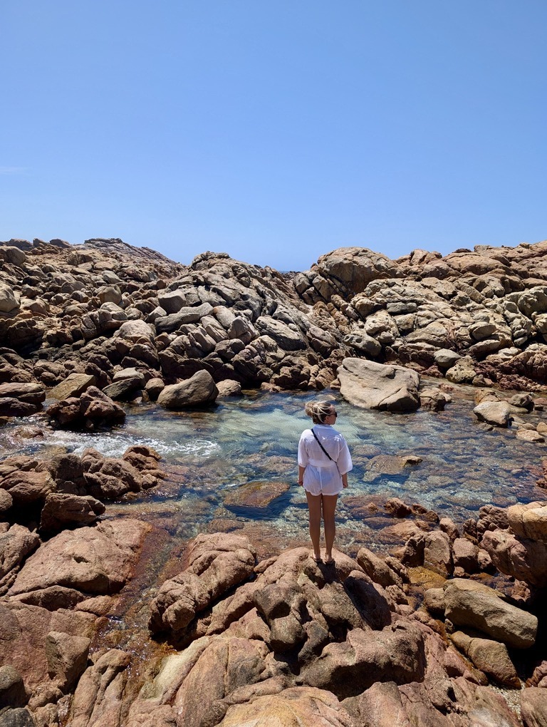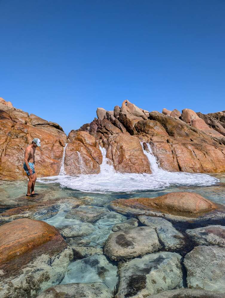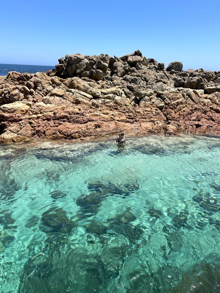 Anschließend machten wir uns auf den Weg zum sogenannten „Aquarium“. Nach einer kurzen Wanderung (ca. 10 Minuten – sofern man sich nicht so wie wir zuerst verläuft 😅) erreicht man dieses kleine Naturparadies. Auch hier bildet sich zwischen den Felsen ein natürlicher Pool mit glasklarem Wasser, in dem man sogar Fische von oben beobachten kann, daher auch der Name Aquarium.