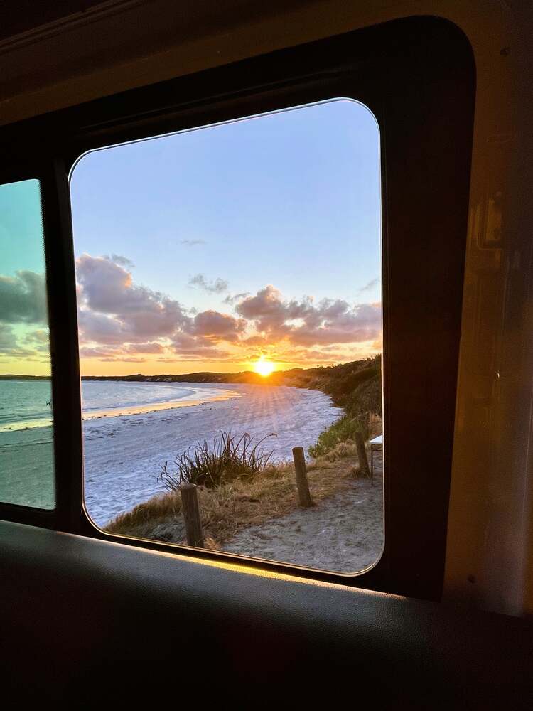 Da das Wetter endlich wieder mitspielte, entschieden wir uns spontan, den restlichen Nachmittag an einem abgelegenen Strand zu verbringen. Im Vorfeld hatten wir bei Albany einen kostenlosen Stellplatz direkt am Meer gefunden: den East Bay Campground, ein kostenloser, naturbelassener Campingplatz direkt am Meer.