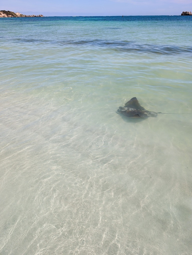 Unser erster Strand-Stopp: Hamelin Bay. Das Besondere hier: Man kann Rochen direkt am Ufer beobachten, was grundsätzlich ein faszinierendes Erlebnis ist. Allerdings hat das Ganze einen bitteren Beigeschmack: Die Rochen werden offenbar regelmäßig angefüttert und sind an Menschen gewöhnt. Leider greifen viele Touristen sie sogar an, was absolut respektlos gegenüber der Tierwelt ist – bitte tut das nicht! Trotzdem kann man auf diesem km langen Sandstrand sehr gut die Seele baumeln lassen, schwimmen und die Zeit genießen.