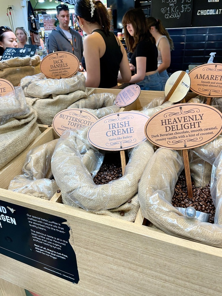 💡 Unser Tipp: Unbedingt einen Kaffee bei „The Coffee Connection“ trinken! Dort gibt’s nicht nur hervorragenden Kaffee, sondern auch Bohnen und Kapseln in besonderen Sorten. Wir haben uns für Baileys und Hazelnut Cinnamon entschieden.