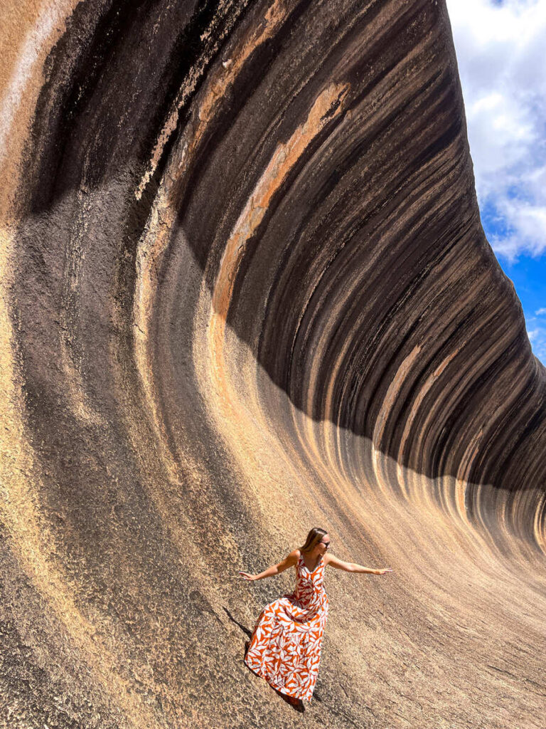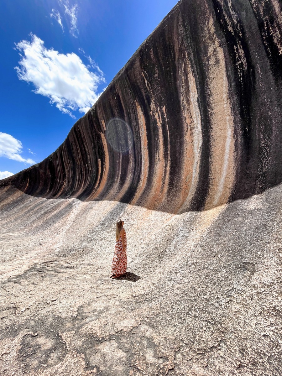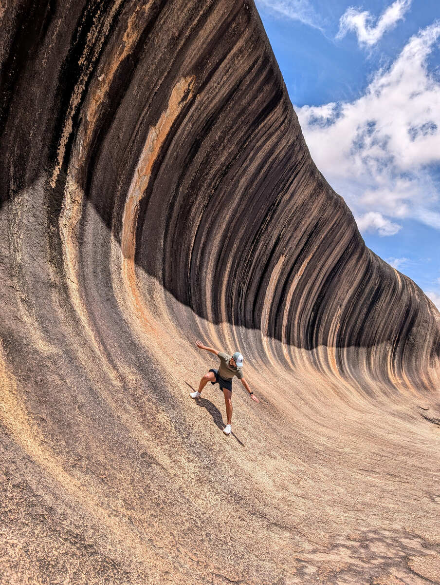 Vom Karijini Nationalpark kommend, startete unsere Reise durch Südwestaustralien mit einem Zwischenstopp beim bekannten Wave Rock in Hyden, eine beeindruckende, wellenförmige Gesteinsformation, die mitten aus der Landschaft herausragt.