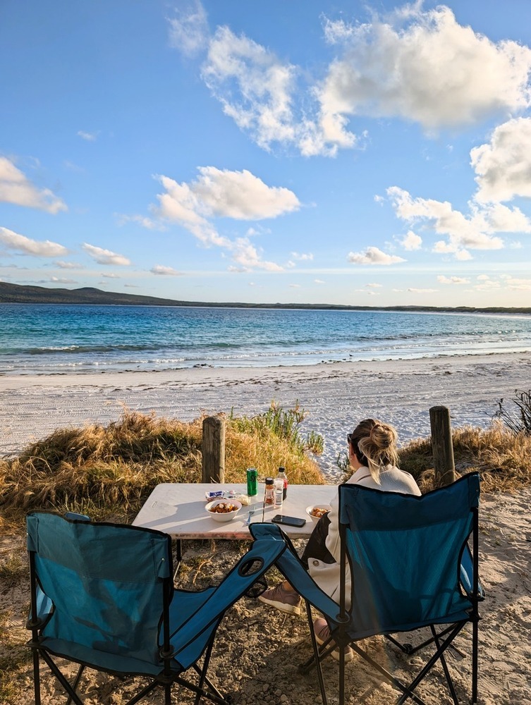 Heute zeigte sich das Wetter endlich von seiner besseren Seite – perfekt für den berühmten Great Ocean Drive rund um Esperance. Wir starteten den Tag mit einem leckeren Frühstück vom Little Local und machten es uns damit am Salmon Beach gemütlich. Gleich daneben liegt der Blue Haven Beach – noch spektakulärer, mit seinem türkisblauen Wasser und dem fast schon kitschigen Panorama.