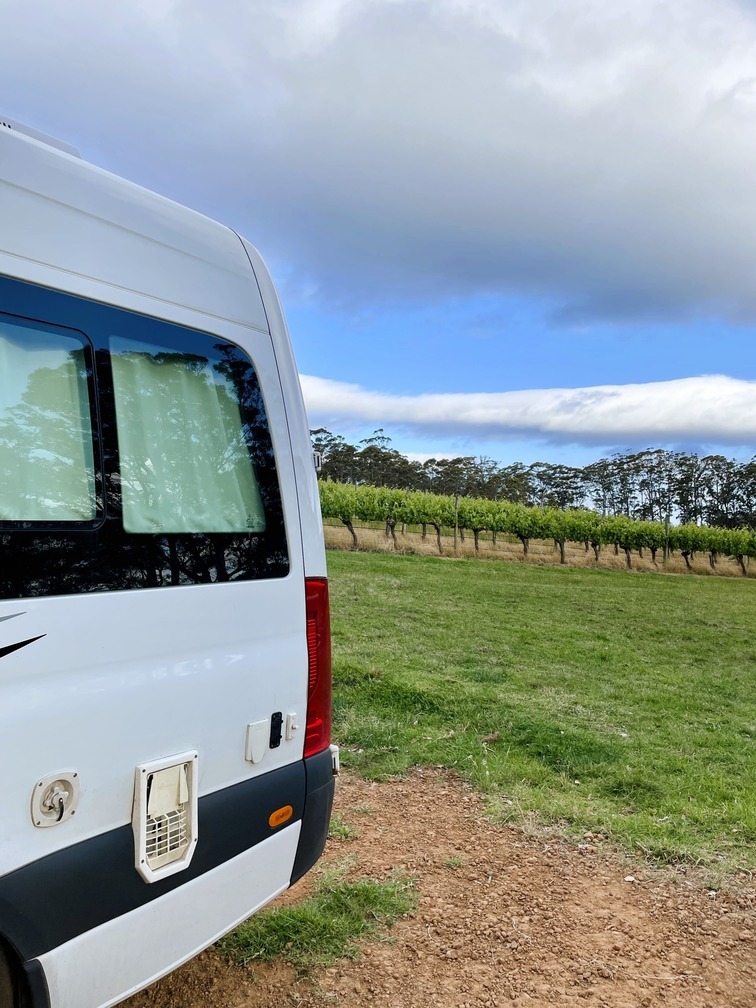 Da in dieser Gegend nur noch “touristische” Campingplätze frei waren, entschieden wir uns, noch rund 45 Minuten weiter zur Rockcliffe Winery zu fahren. Ein absoluter Glücksgriff: Wir verbrachten einen herrlich ruhigen Abend mitten in der Natur, umgeben von Weinreben und unter einem leuchtenden Sternenhimmel. Für uns ein echter Geheimtipp, wenn nicht gerade günstig.