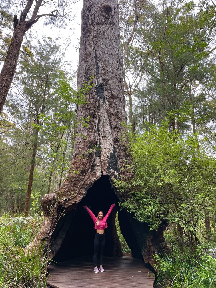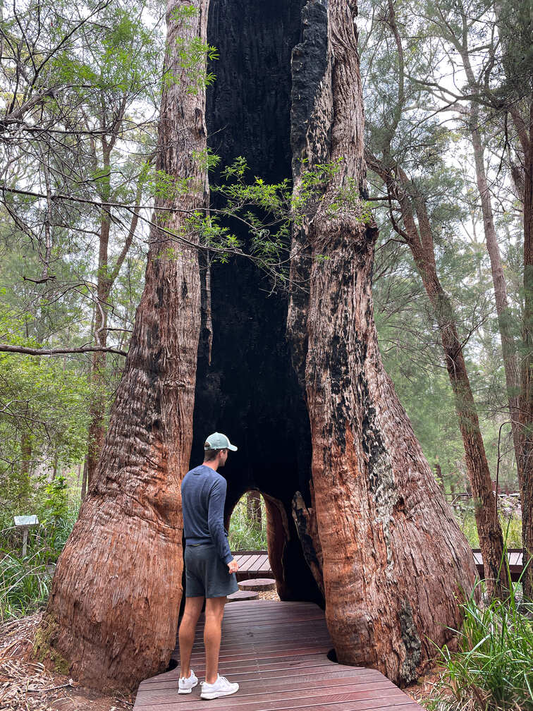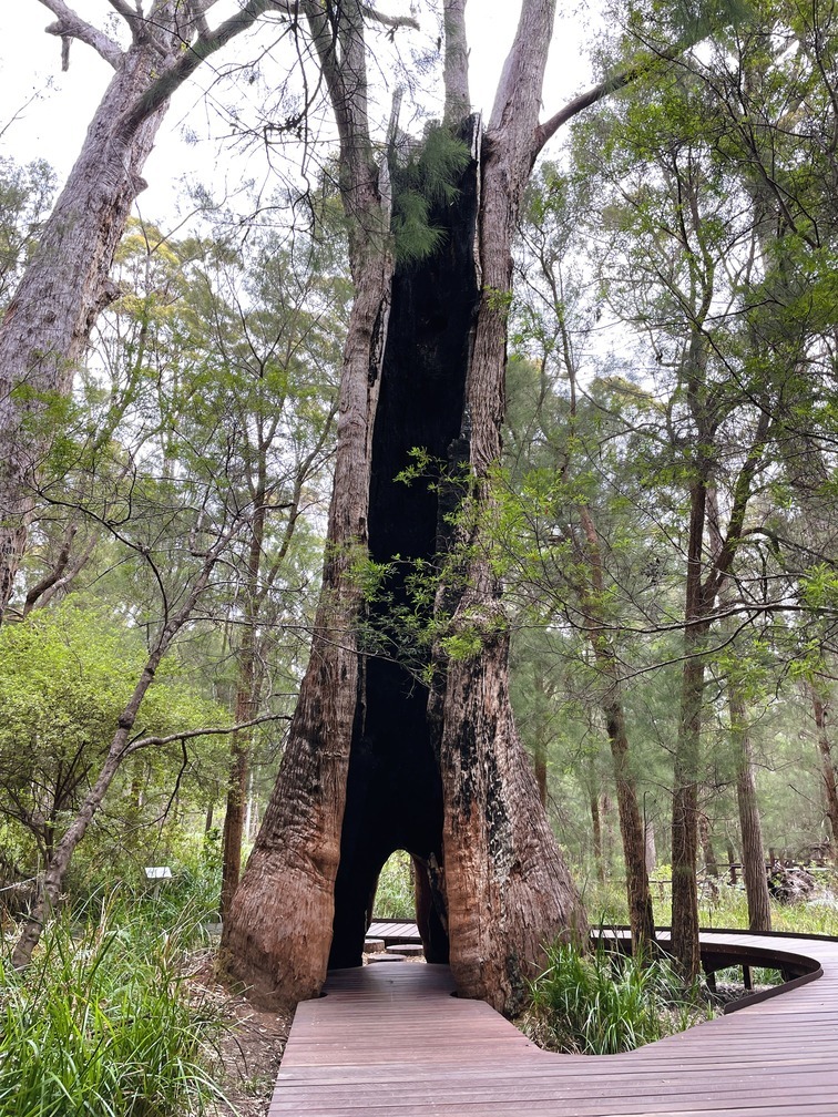 Hier spazierten wir durch einen beeindruckenden Wald voller riesiger, alter Bäume. Besonders eindrucksvoll: Viele Stämme sind, aufgrund eines Feuers aus dem Jahr 1937, teilweise ausgebrannt und doch leben und wachsen die Bäume weiter. Wer mag, kann hier auch den kostenpflichtigen Tree Top Walk machen. Wir haben uns für die kostenlose Runde am Waldboden entschieden, die ebenfalls wunderschön war.