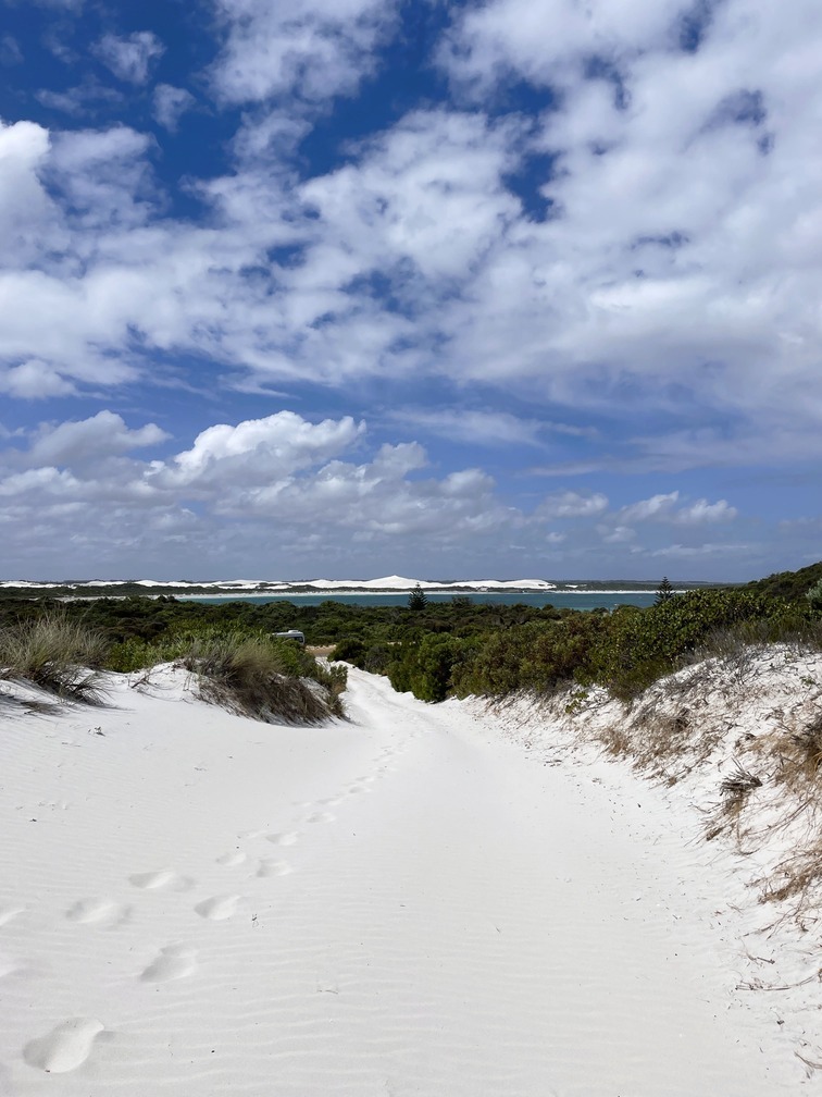Da das Wetter heute leider nicht mitspielte, machten wir nur einen kurzen Abstecher zur Wylie Bay und den angrenzenden Sanddünen. Der starke Wind und die kühlen Temperaturen ließen uns aber schnell wieder umkehren – definitiv kein Strandwetter.
