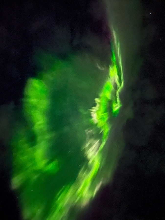 Wir wurden nicht enttäuscht und konnten die tanzenden Polarlichter an einem klaren Sternenhimmel beobachten – ein wirklich magischer Moment, der für immer in Erinnerung bleibt.