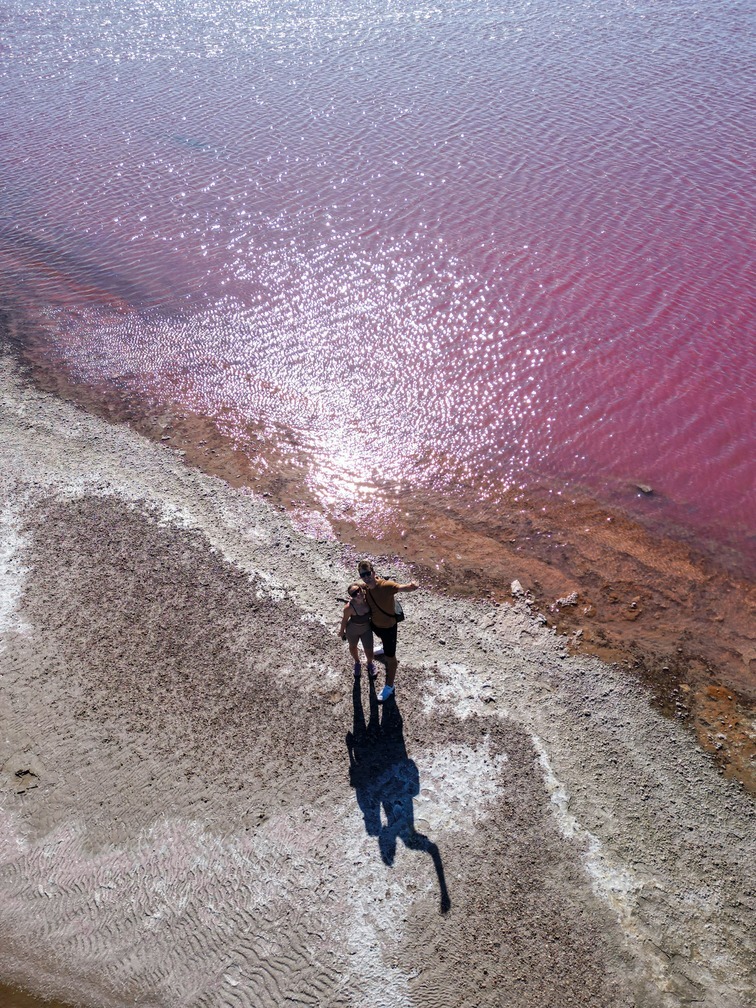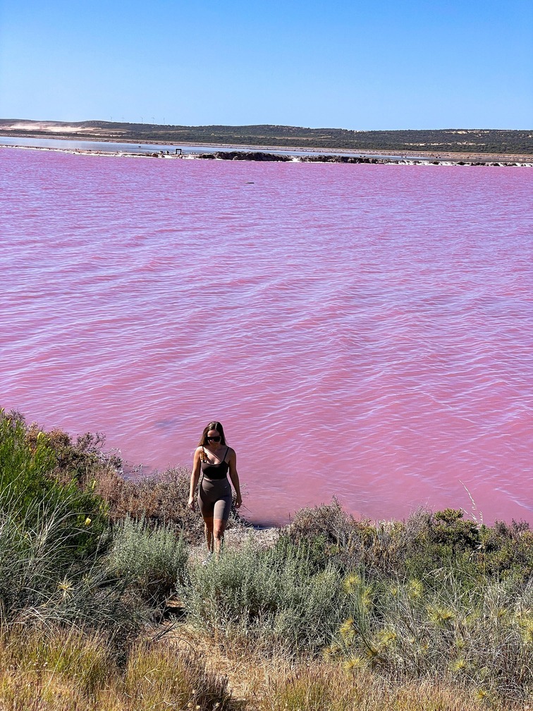 Am nächsten Morgen ging’s weiter Richtung Norden, mit einem Zwischenstopp an der Hutt Lagoon, besser bekannt als der Pink Lake bei Port Gregory. Und ja: Der See ist wirklich rosa!