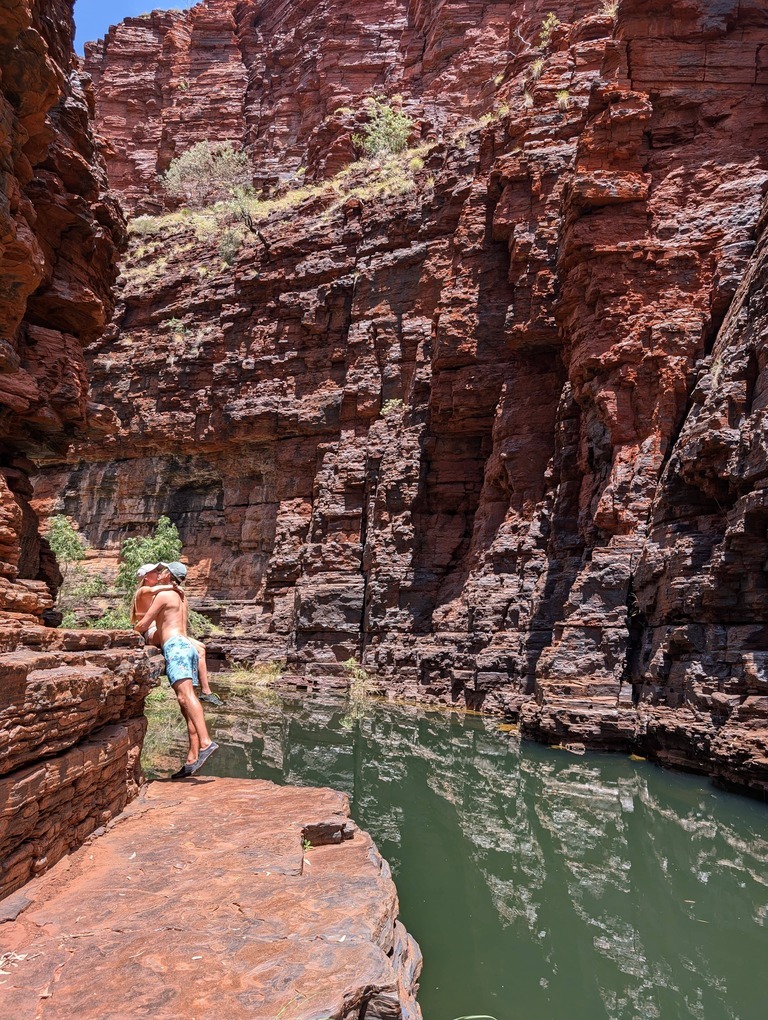 Ein besonderes Ziel auf unserer Bucket List war die Hamersley Gorge, eine der schönsten Schluchten im Karijini Nationalpark. Leider durften wir mit unserem Mietcamper (kein 4WD) laut Mietwagen-Vertrag nicht dorthin fahren. Die Locals meinten zwar, die Straße sei in gutem Zustand, doch ohne Erlaubnis der Vermietung wollten (und durften) wir das Risiko nicht eingehen.