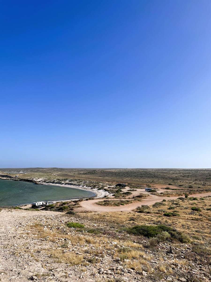 Unsere Nacht verbrachten wir an der Whalebone Bay – ein einfacher, aber wunderschöner Naturstellplatz direkt am Meer. Für die Campingplätze in der Gegend (Whalebone Bay, Eagle Bluff etc.) meldest du dich am besten im Visitor Center Denham an und holst dir deine Genehmigung ab. Kosten pro Nacht: ca. 15 AUD.