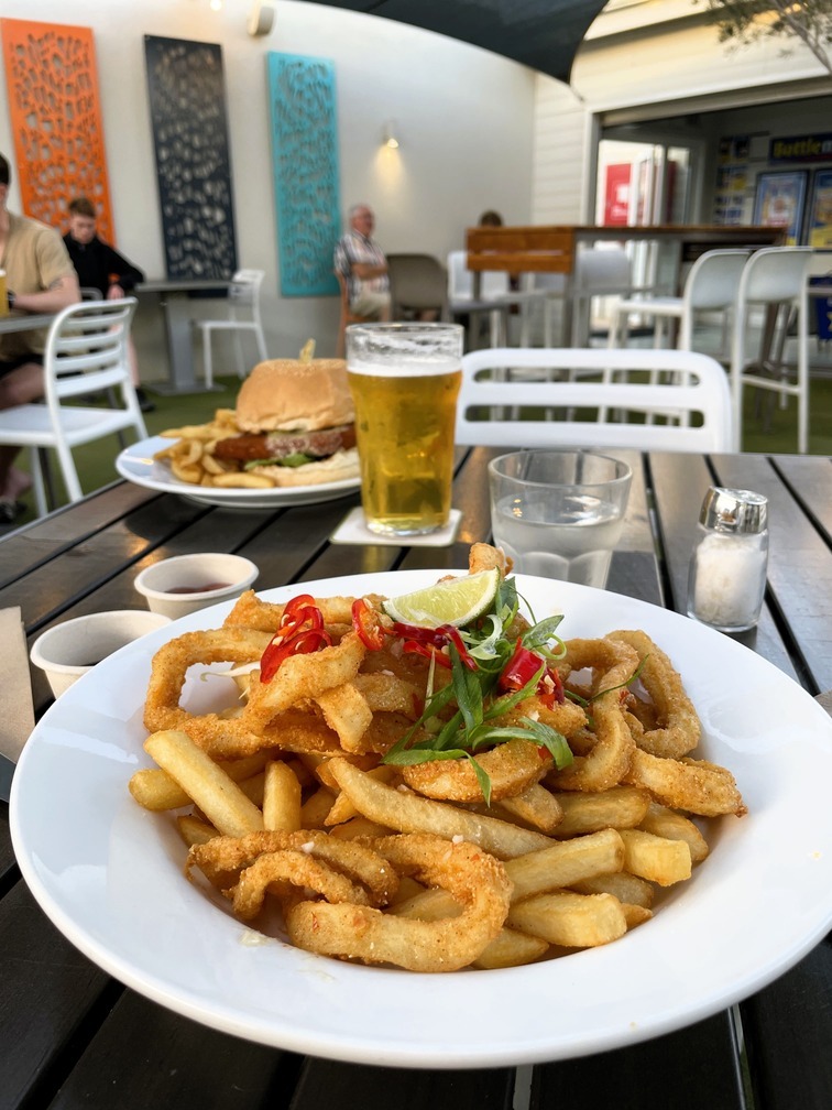 Zum Essen ging’s in die Bill’s Bar, wo es für uns Veggie-Burger und Calamari Fritti gab – beides können wir sehr empfehlen.